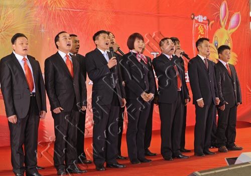 1月24日,宜昌市新豐機電設備制造有限公司董事長張本新攜夫人在表演文藝節目。當天,該公司舉行表彰和聯歡會,400多名公司員工和家屬歡聚一堂,喜迎新年的到來。