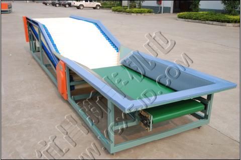 提升和預(yù)選平臺:提升斜工作面是使水果在進(jìn)入預(yù)選平臺前均勻平鋪,人工預(yù)選平臺的輸送管在運(yùn)行的過程中帶動水果不斷旋轉(zhuǎn),增加可視性。